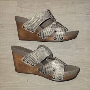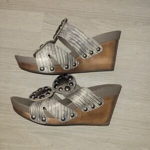 Vince Camuto Wedge Sandals Embellished Metallic Snake Print 7 luxury sexy summer