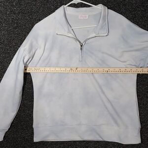 Pink Lily Light Blue Pull Over Sweatshirt Jacket with Zipper Collar