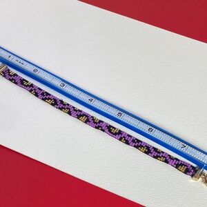 Purple Black and Gold Leppard Print Cheeta Pattern Seed Bead Bracelet