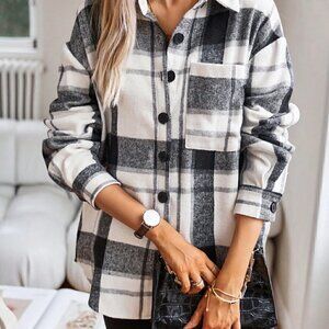 Black and White Casual Womens Plaid Print Drop Shoulder Shirt