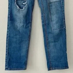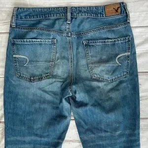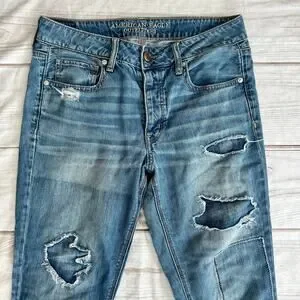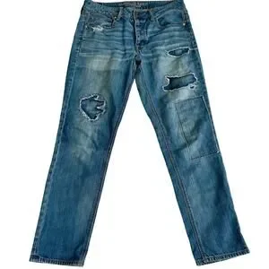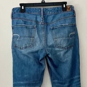 American Eagle Tomgirl Distressed Patchwork Straight leg Jeans Denim Grunge Skater Bohemian Boho Hipster Women's