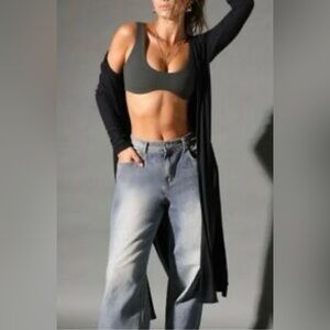 JOAH BROWN Luna Cardigan S/M in Ribbed Black EUC