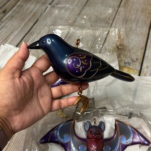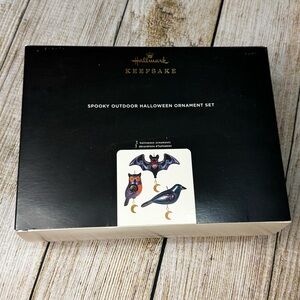 NWT Hallmark Halloween Spooky Outdoor Halloween Ornament Set with Owl, Bat and Raven