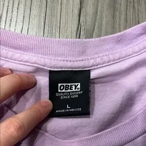 Mens Obey Tshirt. Color is light purple/lavender. 100% cotton. No flaws.