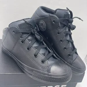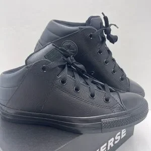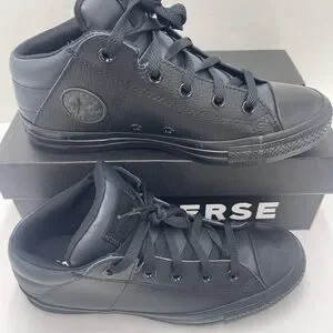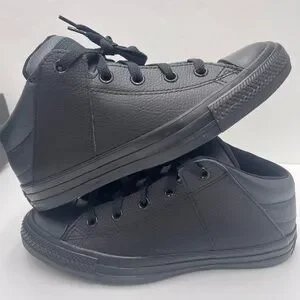 Classic Converse sneakers. All-black design. Comfortable and stylish for daily adventures.