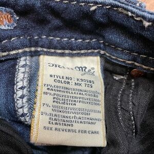 Skinny style jeans, manufactured distressing/fading with back pocket accents true to the Miss Me brand.