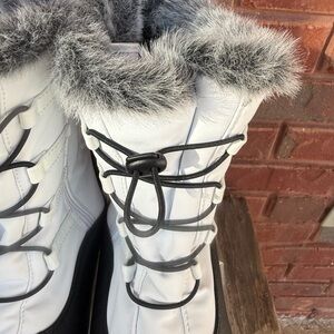 Totes Weatherproof Adele Winter Snow Boots Womens Size 10 White Black Fur Lined