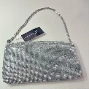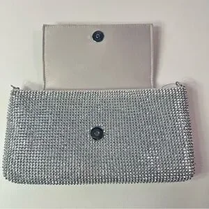 NEW WOMEN’S INC INTERNATIONAL CONCEPTS Mesh East West Silver Crystal Clutch Bag