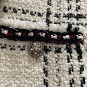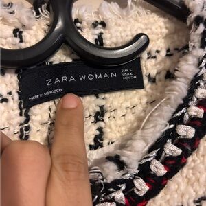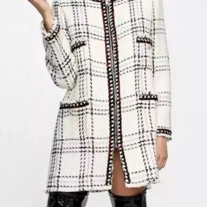 Zara Cream Boucle Coat Jacket Wool Blend Zip Front Tweed Texture Plaid size M