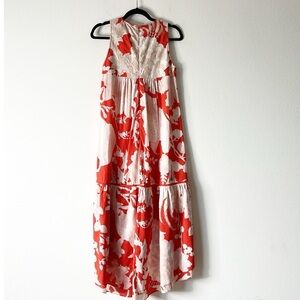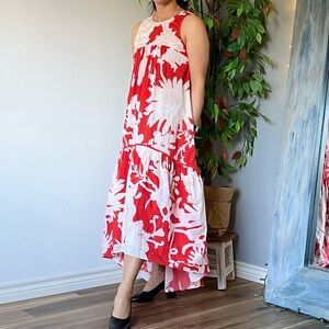 This vibrant red sleeveless dress features a stunning floral pattern, perfect for any occasion. Enjoy the comfort and style it brings to your wardrobe.