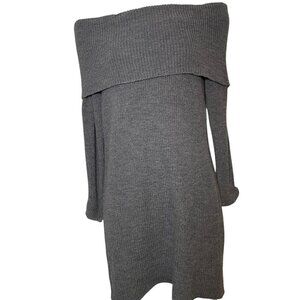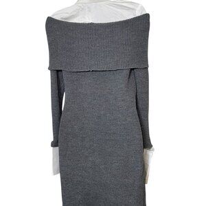 Ser.O.Ya Elodie Sweater Dress Large Gray Off Shoulder Ribbed Knit NWT