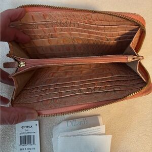 Chic Brahmin wallet in blush crocodile texture. Ideal for stylish organization.