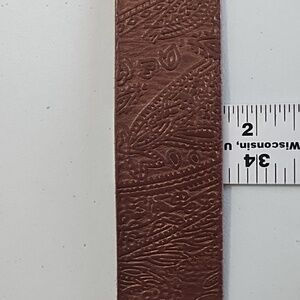 Brown Tooled Leather Belt with Coppery Metal Buckle With Rhinstones