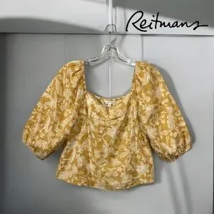 NWOT, Reitmans, Yellow Cropped Floral Blouse, Small