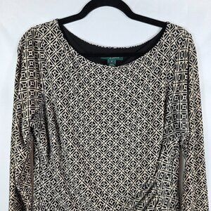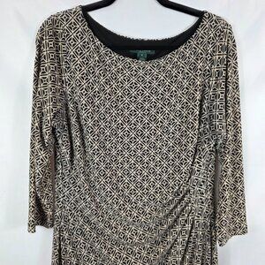 Lauren Ralph Lauren Ruched Sheath Dress Women's Size 16 Black & Tan Geo Print