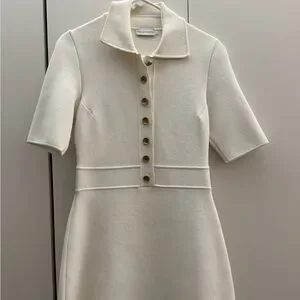 White Crepe Knit Button-Up Dress Scanlan Theadore