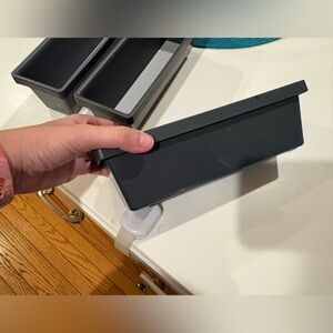 Set of 3 narrow grey drawer organizers ideal for kitchen utensils, office/ craft supplies, or any long slender items.