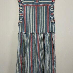 Soft cotton-linen blend, scoop-neckline with functional tie, low-cut armholes, defined waist seam, exaggerated side-slit detail. This billowy top can be layered over your swimsuit post-pool or paired with your favorite shorts to go beyond the beach. Stylish top with bold stripes. Perfect for casual wear.