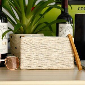 Features: Beautiful straw and polyester clutch with a sleek zipper closure. Compact enough to hold keys, coins, phone, and essentials, yet stylish enough to turn heads. Perfect for beach days, casual outings, or date nights.