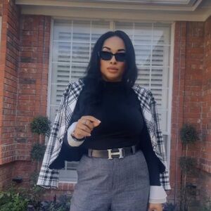 Chic black and white plaid blazer. Perfect for a sophisticated look.