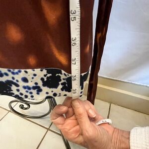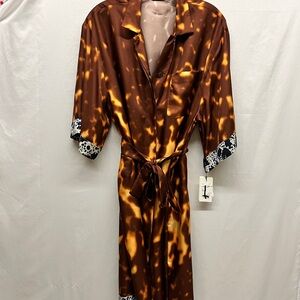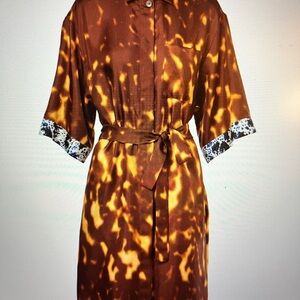Elegant silk dress with a distinctive pattern. Features a belted waist for a flattering fit.