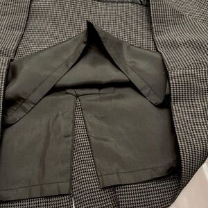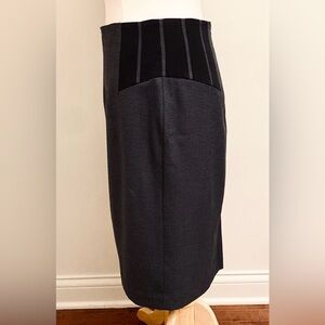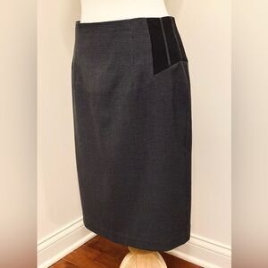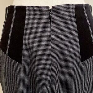 Worthington Grey Black Houndstooth Black Panel Lined Career Pencil Skirt has a hidden back zipper with a back slit.