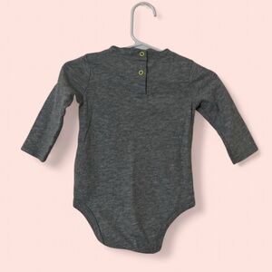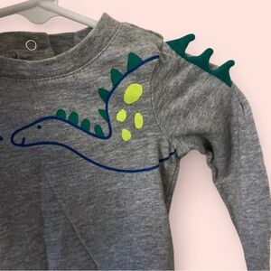 3-6 month infant baby boy Cat & Jack long sleeve one piece bodysuit. Dinosaur print, 3D Dino spikes on shoulder. Super cute & adorable baby boy one piece. Snap button leg & back closure. Cute color scheme, grey, dark green, dark blue & neon|lime green.