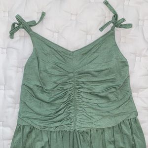 Charming green one piece by Kate Quinn. Features ruched bodice and adjustable straps. Perfect for playful days.