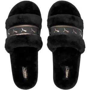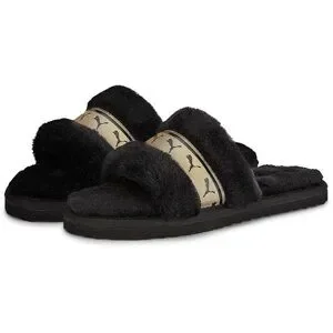 Hard to find PUMA Women's Metallic Fluff REMIX black & gold Slides in size 10