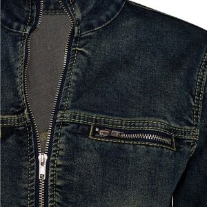 Stylish denim jacket. Fitted design with zip closure. Perfect for casual wear.