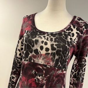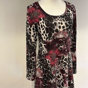 Floral and Leopard Print Long Sleeve sweater Dress size medium