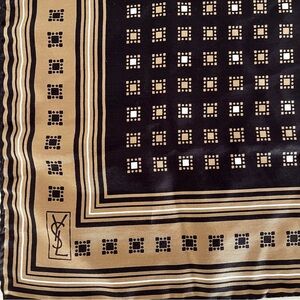 Wonderfully retro scarf with original Yves Saint Laurent YSL tag (pic 6-7), gives meaning to everything old is new again! Great 17” square size can be used as neck, hair, bag scarf accessory. Smaller in size but large in personality!