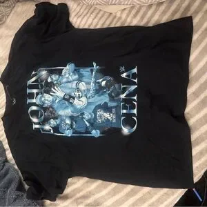Bold WWE tee featuring John Cena. Striking black and blue design. Ideal for fans.