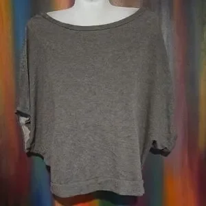 Stylish gray top with unique pattern. Loose fit with wide neckline. Perfect for casual wear.