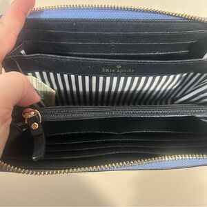 Kate Spade Cameron Street Lacy Large Slim Bifold Zip Around Blue Wallet