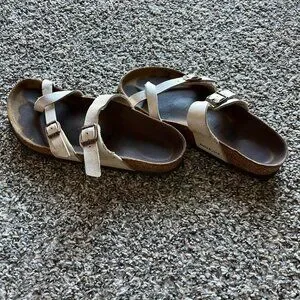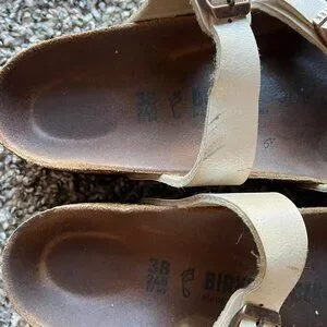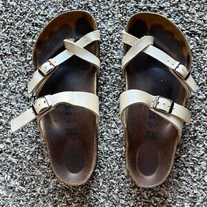 Birkenstock Arizona Sandals Women 7-7.5 (EU 38) Cream Slides Western Comfortable