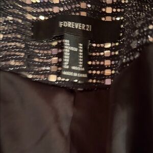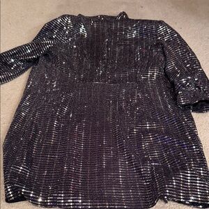 Stylish black blazer with shimmering silver accents. Perfect for a night out. Elegant and chic design.