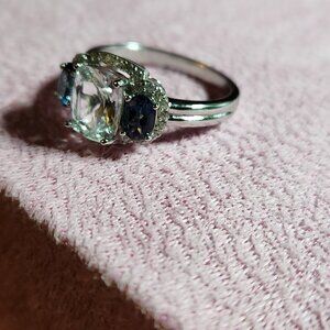 Aquamarine, London blue topaz, and white zircon ring with rhodium over silver. Purchased from JTV in 2020; never worn.