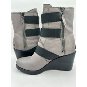 Sorel After Hours Gray Leather Wedge Moto Bootie Woman’s SZ 8.5