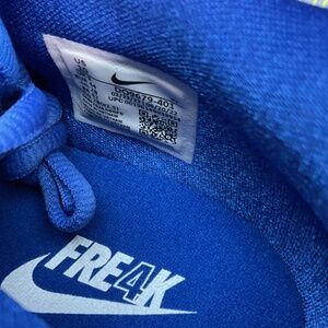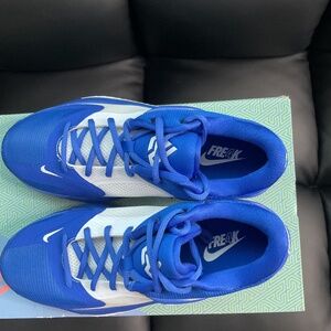 Brand new with tags (NWT) and in the original box (deadstock condition), these Nike Zoom Freak 4 TB (Team Bank) basketball shoes are a highly sought-after model from Giannis Antetokounmpo's signature line. This "Game Royal" blue and white colorway is perfect for the court or casual wear and is popular among team gear enthusiasts.