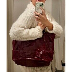 COLE HAAN Dijon Wine Red Patent Leather Side Pocket Totebag 17"L x 6"W x 20"H