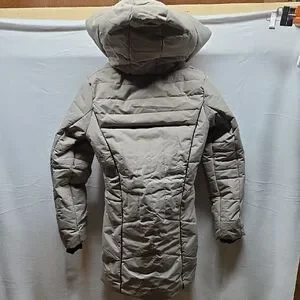 Embrace warmth and style with this women's hooded quilted puffer coat. Its sleek gray design is perfect for any casual outing.