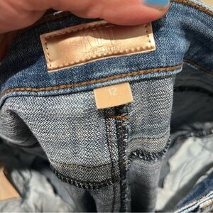 Kut from the Kloth jeans women's 12, Stevie Straight leg style in medium wash, vertical seam along leg, slit along hem, cotton poly spandex blend.