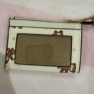Coach White Card Holder with Winter Teddy Bear Design