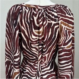Tommy Bahama Midi Dress Zen Zebra Print Wrap A Line Boho Brown White Size Small