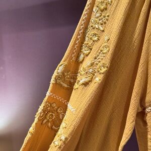 Free People NWT Mustard Color Embroidered Top