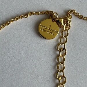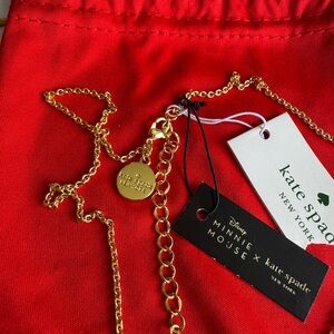 This kate spade necklace features a sophisticated gold chain paired with a glossy Minnie Mouse pendant. The minimalist design exudes elegance, making it a versatile addition to any jewelry collection.