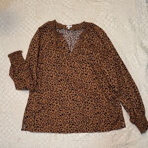 Chic leopard print blouse with long sleeves. Perfect for casual outings. Size medium but fits closer to a large or an oversized medium.