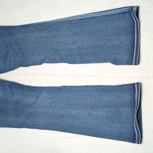 Dark blue jeans with sparkling embellishments. Features intricate pocket design. Perfect for a stylish look. There are no flaws to call out. C007