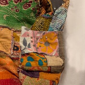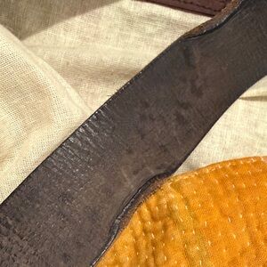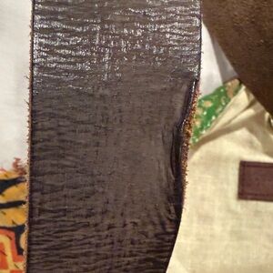 Eye-catching patchwork design. Rich, vibrant colors. Excellent condition aside from a bit of warping on the leather strap….see pictures.